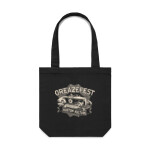 Our stunning new design for GreazeFest 2024, illustrated by Ger Peters, featuring a 1939 open top Chevrolet and a big box guitar, trimmed with pinstripes.